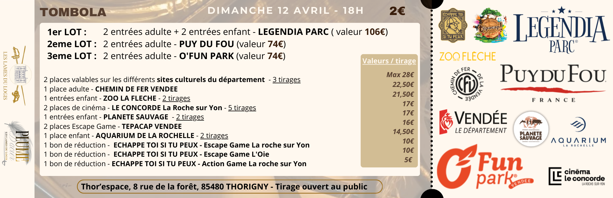 Plus de nombreux autres lots (places de cinéma, zoo, aquarium, escape game...). Retrouvez le détail des lots ci-dessous.