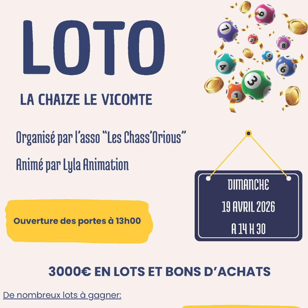 Loto organisé par l'association Les Chass'Orious